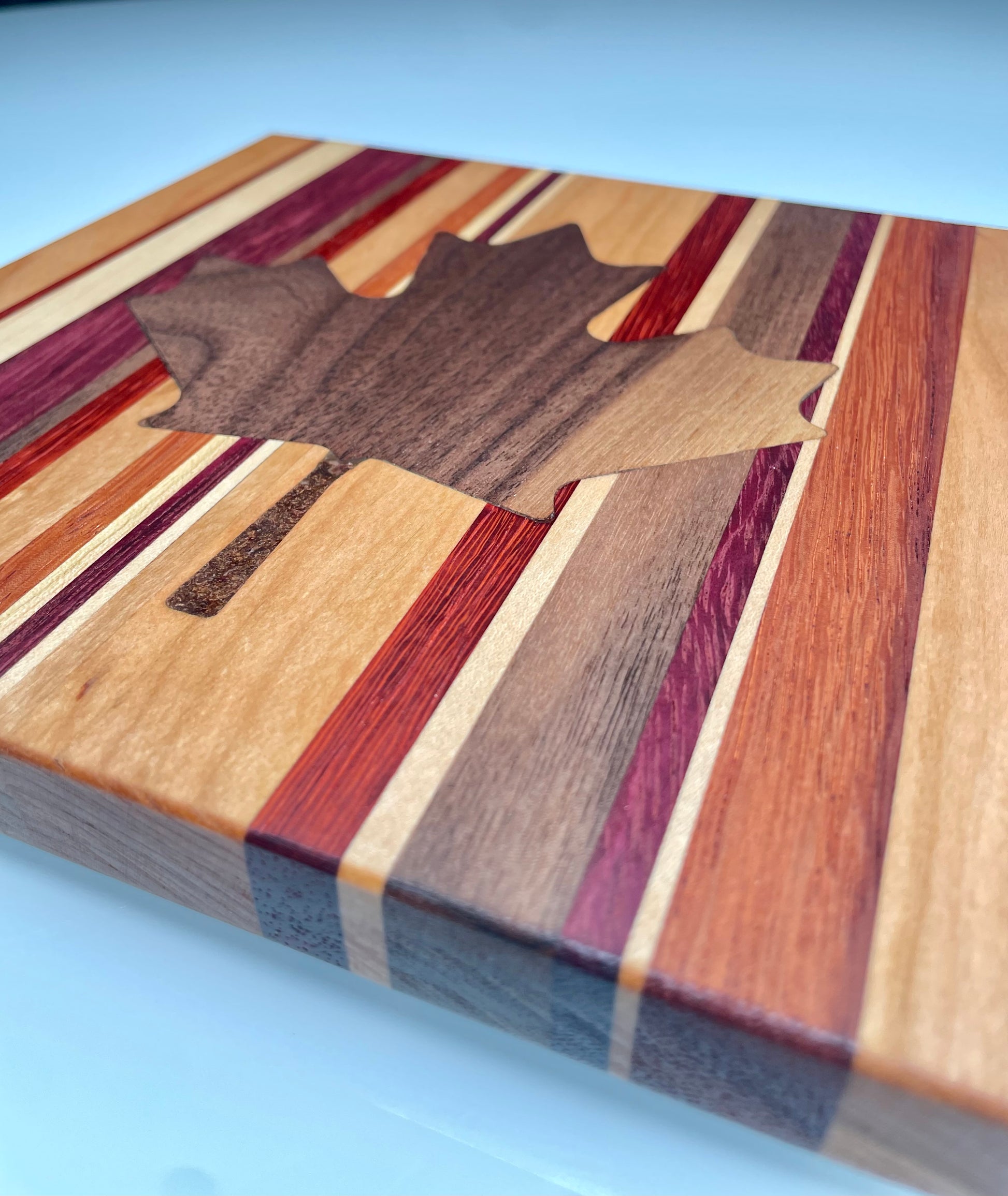Materials: Exotic Hardwood (Padauk, Purpleheart & Zebra), Domestic Hardwood (Maple & Walnut).